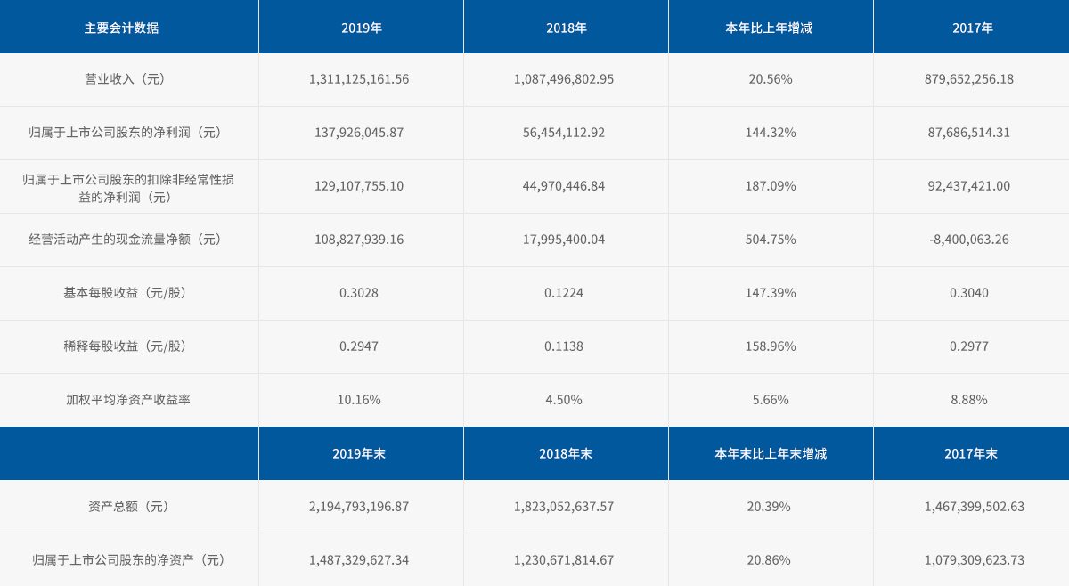 2019年度主要會計數(shù)據(jù)和財務(wù)指標(biāo)