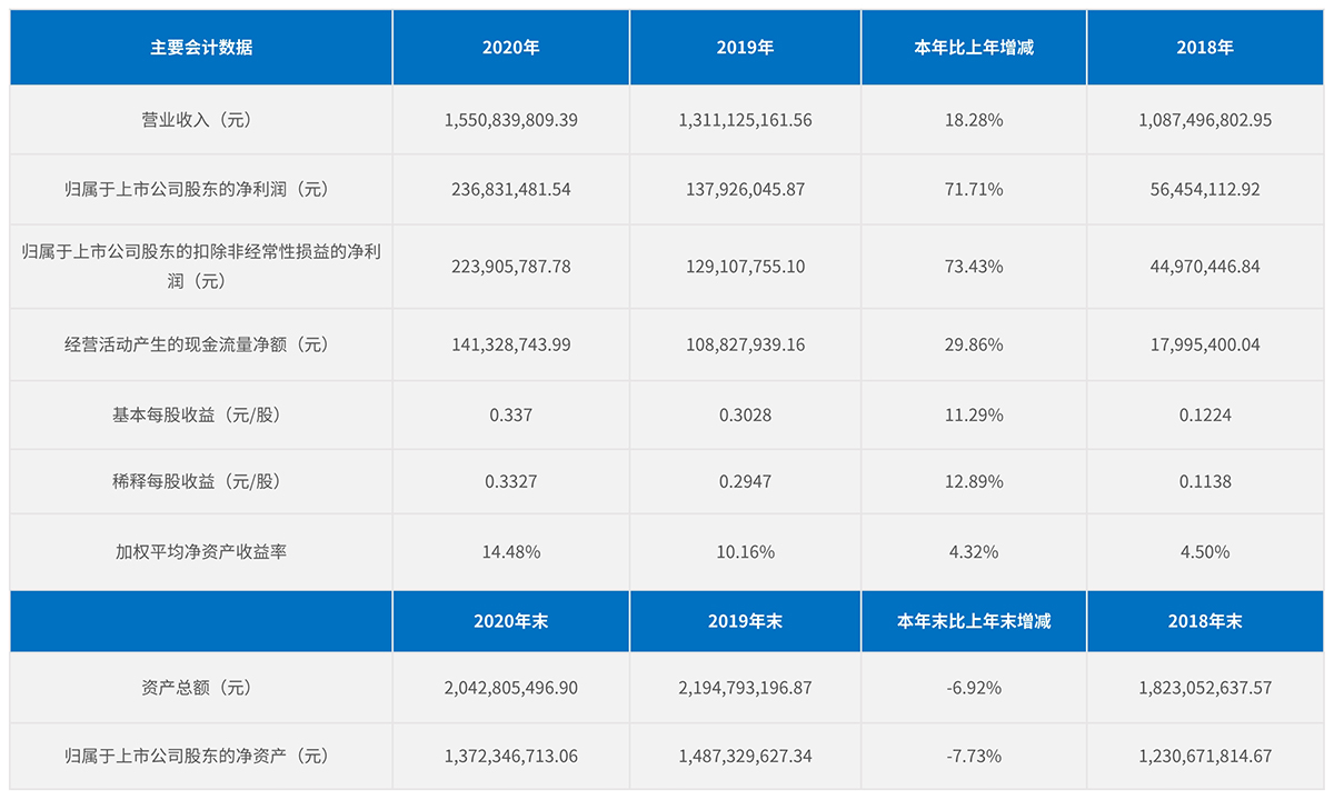 2020年度主要會計數(shù)據(jù)和財務(wù)指標(biāo)