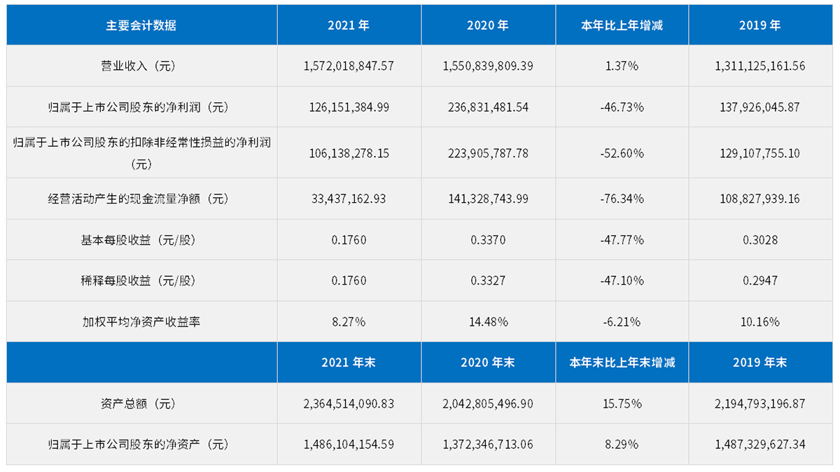 2021年度主要會計數(shù)據(jù)和財務(wù)指標(biāo)