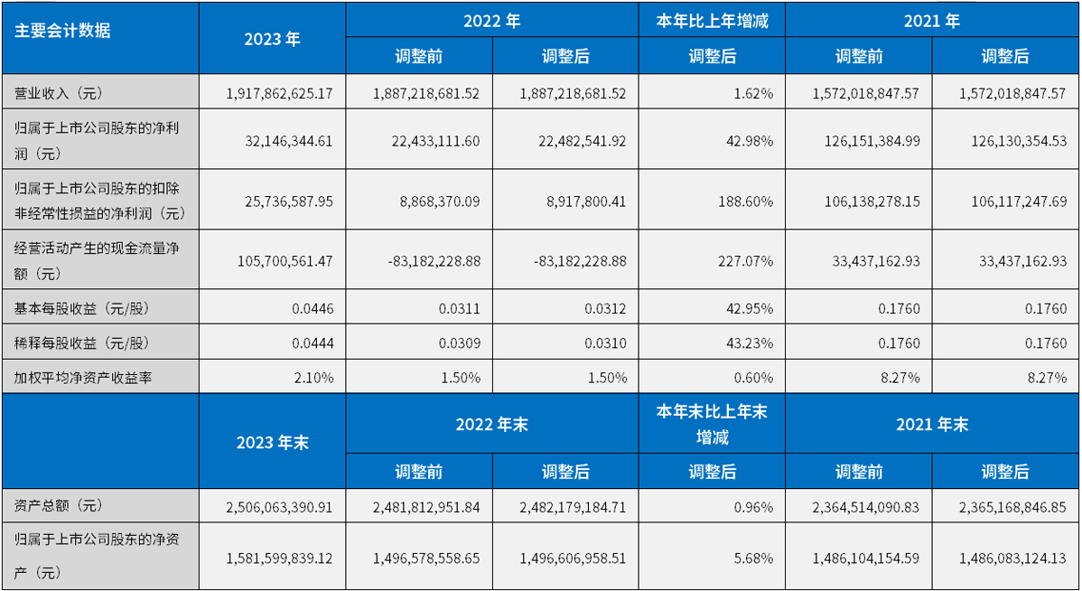 2023年度主要會計數(shù)據(jù)和財務(wù)指標(biāo)