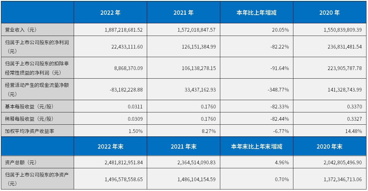 2022年度主要會計數(shù)據(jù)和財務(wù)指標(biāo)