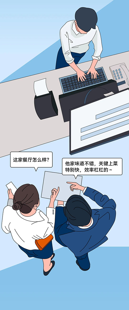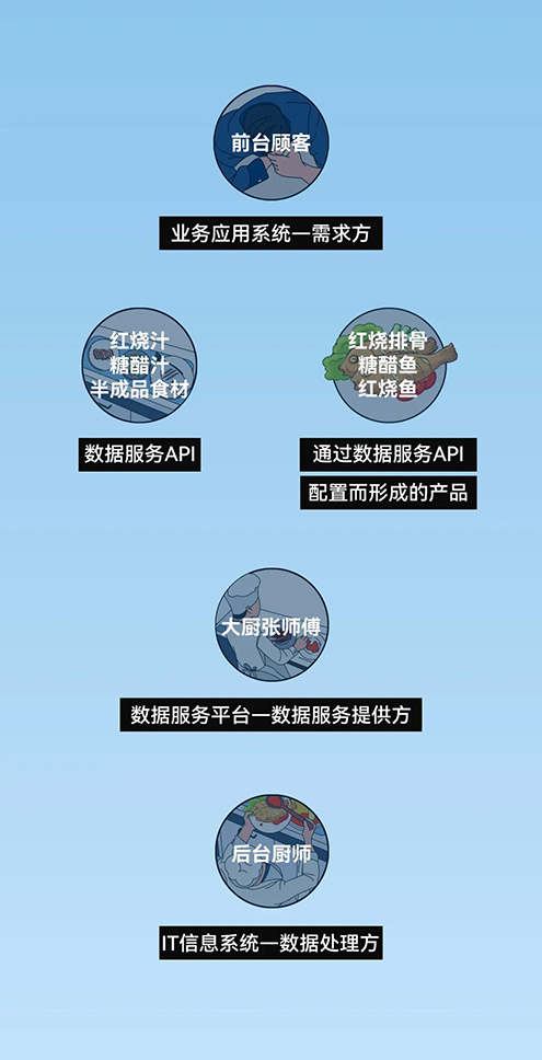 透過這幅漫畫,我們不難發現,這家餐廳的日常運營場景與金融業務的數據應用場景是互為映射的: