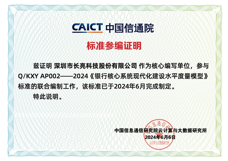 在新核心系統(tǒng)領(lǐng)域不斷進化的長亮科技,一直是行業(yè)的創(chuàng)新標桿,多年來參與了大型國有銀行、股份制銀行、城商行、農(nóng)商行、民營銀行等幾十家大中小型銀行的核心系統(tǒng)現(xiàn)代化改造工作,厚載實踐經(jīng)驗與方法論。此次參與《銀行核心系統(tǒng)現(xiàn)代化建設(shè)水平度量模型》的編制工作,是長亮科技大力踐行標準化工作、引領(lǐng)行業(yè)高質(zhì)量發(fā)展的又一成果。