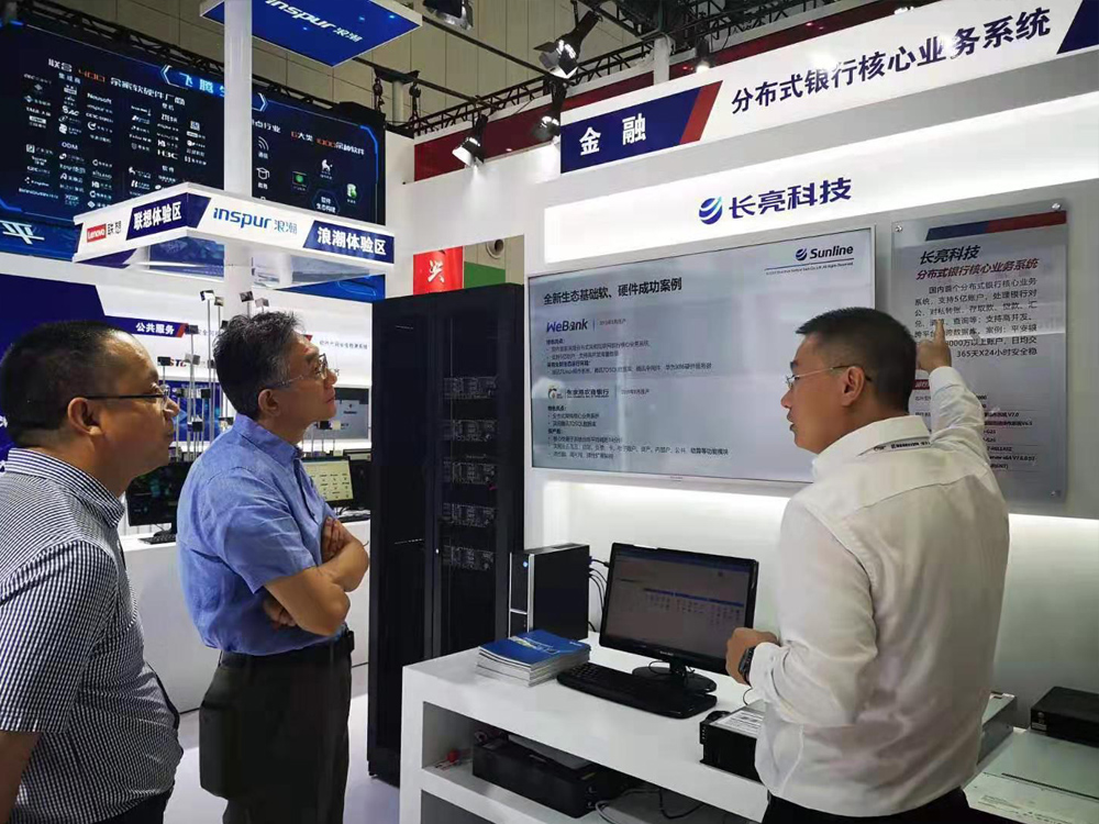 中國電子信息產業發展研究院院長盧山、副院長黃子河等領導均到長亮科技展位考察調研,在詳細了解了長亮科技在微眾銀行、張家港農商銀行等銀行核心業務系統取得的創新突破后,領導們紛紛對長亮科技取得的成績表示肯定。