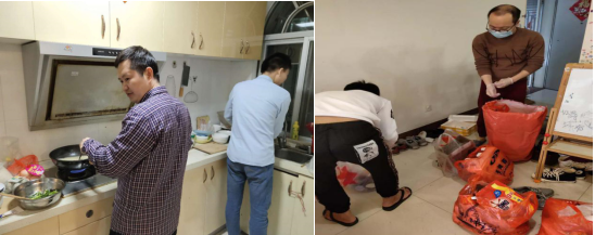 為減少疫情對項目進度的影響,華興銀行數據集市、華興銀行財務集市等項目組的成員早早回到了項目所在地自動隔離待命,確保復工后可以第一時間奔赴現場。由于疫情,大家沒辦法在外就餐,于是項目組成員就過成了一家人,一起在項目地打掃衛生、一起做飯,你洗碗來,我炒菜,歡樂一家親。