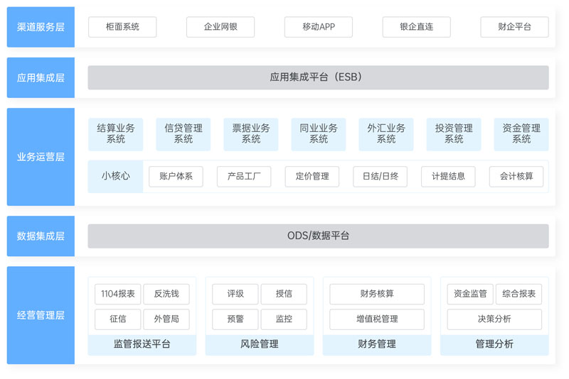 基于商業(yè)銀行“小核心、大外圍”架構(gòu)體系,具備高性能、高可靠、高可用的特性