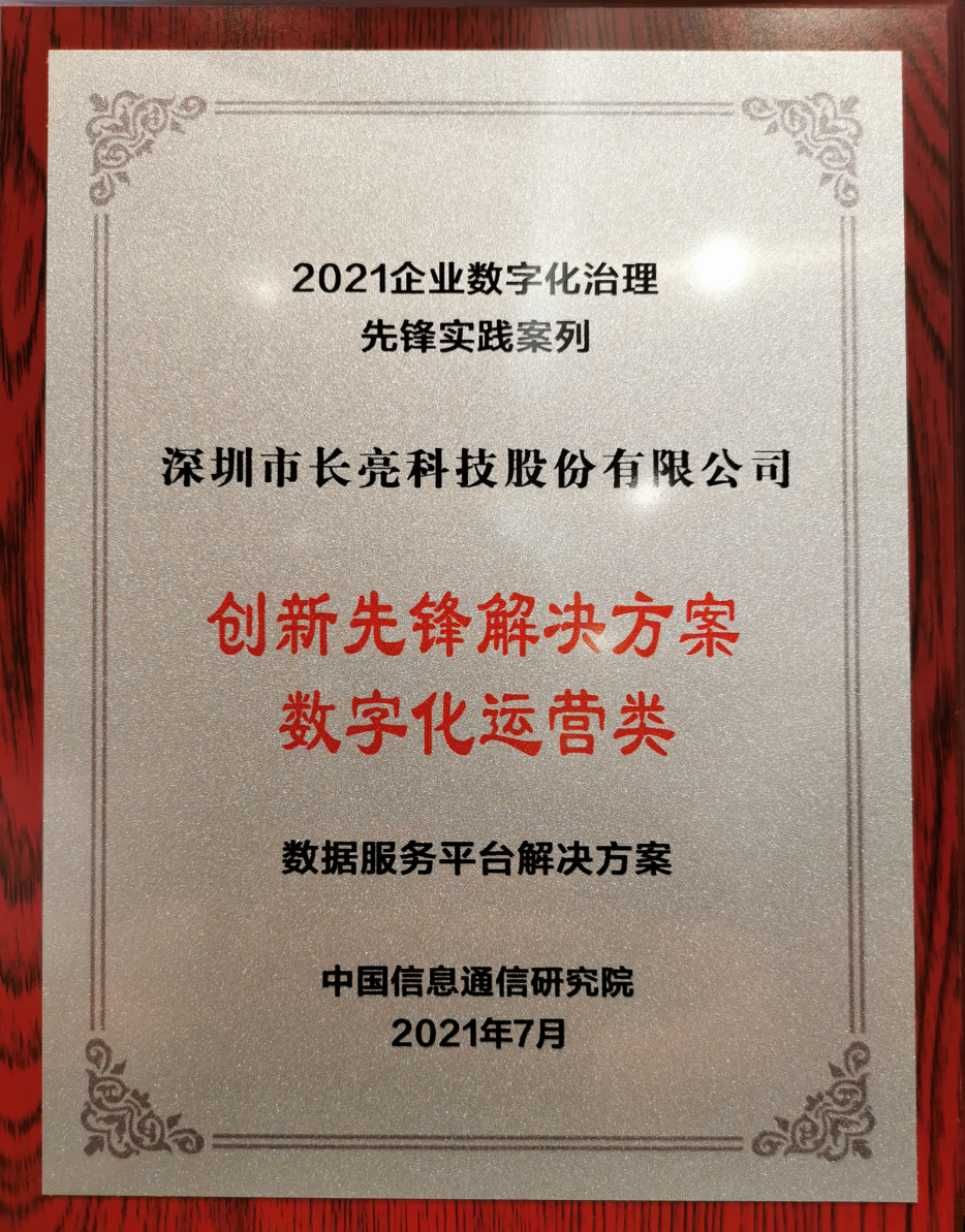 “2021企業數字化治理先鋒實踐案例” 評選活動由中國信通院與信息科技風險治理工作委員會聯合籌辦,經過線上投票和答辯,以及來自行業監管層、企業管理層等數據治理和數字化領域專家從技術平臺的自動化和智能化程度,應用場景及治理效果,創新性和示范性,自主可控性以及安全與風險保障性五個維度權威評估,長亮科技數據服務平臺從100多個案例中脫穎而出,成功入圍。