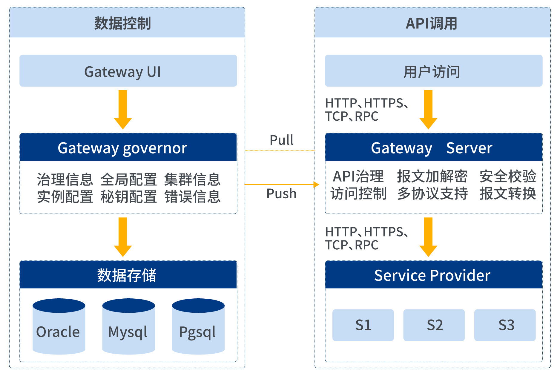 目前市面上基本都是一個服務(wù),沒有做到最大功能上的解耦,在此基礎(chǔ)上長亮科技全面創(chuàng)新,將網(wǎng)關(guān)服務(wù)分為管控端和運行端兩部分,單獨運行,讓網(wǎng)關(guān)運行服務(wù)脫離外界依賴,真正將gateway最大化限度的解耦。